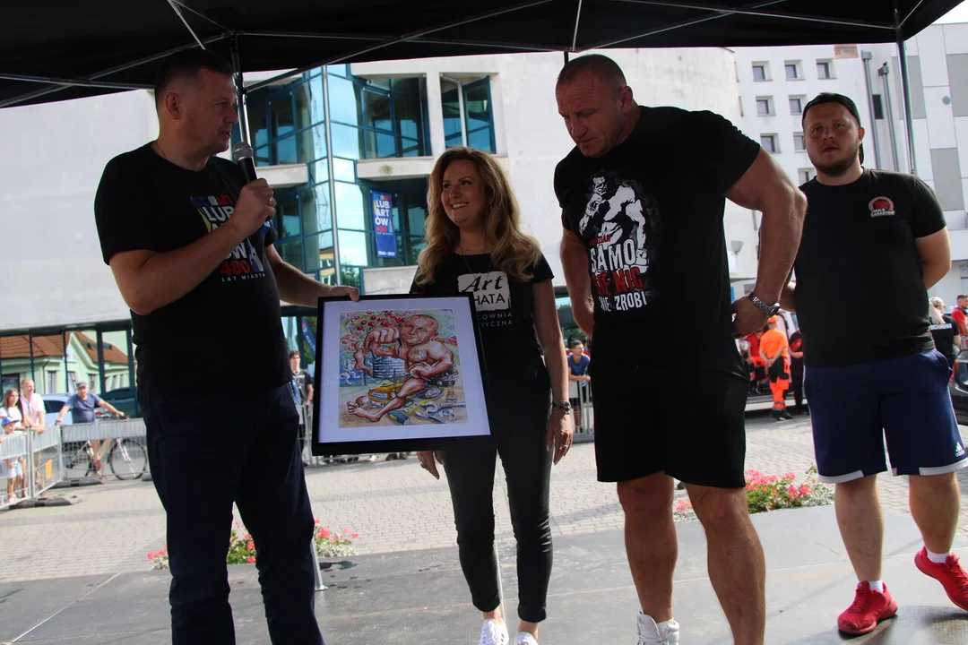Pudzianowski dostał w Lubartowie swoją karykaturę. Nie zdenerwował się. Ufff... (zdjęcia)