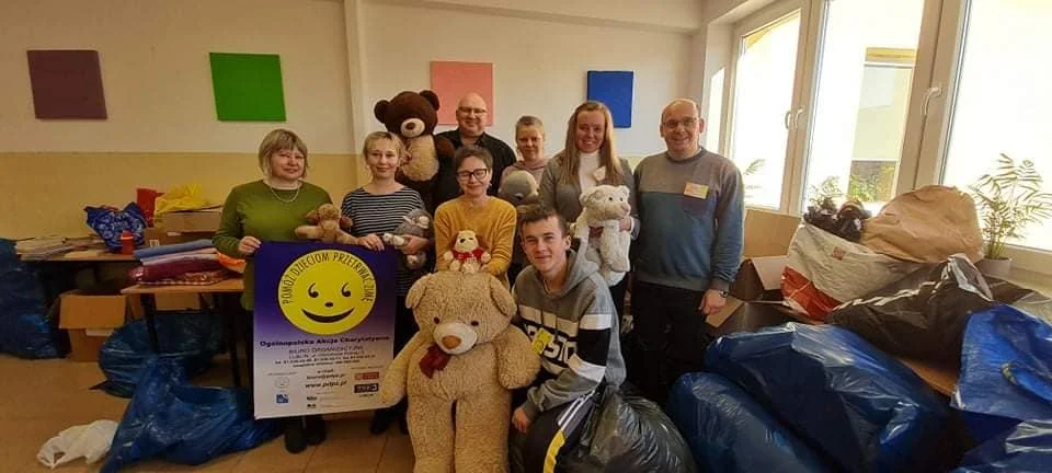 Wolontariusze zebrali: 600kg żywności długoterminowej, 1000kg odzieży, 50kg obuwia, 220kg zabawek, 100kg artykułów szkolnych i papierniczych oraz 600kg środków czystości.