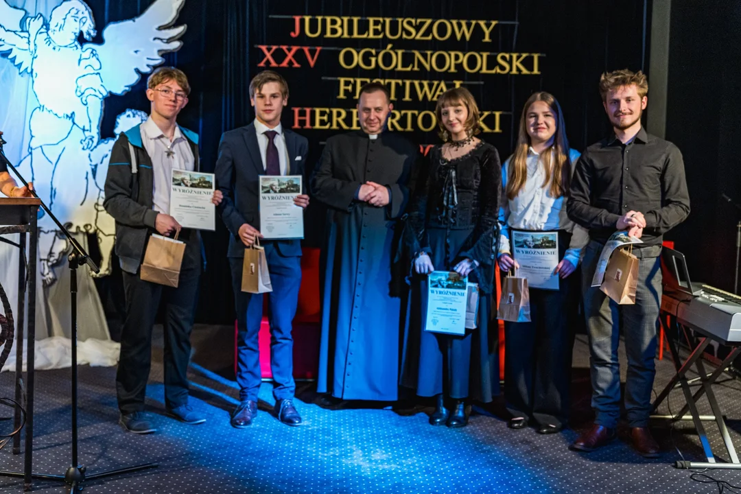 - 28 marca 2025r., dotarła do nas również wspaniała wiadomość o sukcesie naszych uczniów w XXV Ogólnopolskim Festiwalu Herbertowskim. W tym prestiżowym konkursie, w kategorii recytacji, Oliwia Nowicka z 3 m. otrzymała trzecią nagrodę, a Dominik Cieniuch z 1h wyróżnienie - informue szkoła.