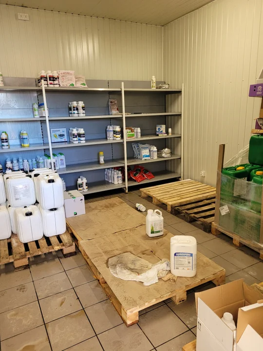 - Przyszedłem do sklepu, który składa się z dwóch części, sprzedażowej i magazynu. Zobaczyłem magazyn okradziony i zniszczony, cały by zalany pestycydami, żeby zatrzeć ślady, zalany był też sprzęt elektroniczny. Złodzieje wiedzieli po co przyszli, skradzione zostały środki ochrony roślin poszukiwane przez rolników: środki ochrony zbóż jarych, środki grzybobójcze, owadobójcze - mówił właściciel sklepu Dawid Bujek.
