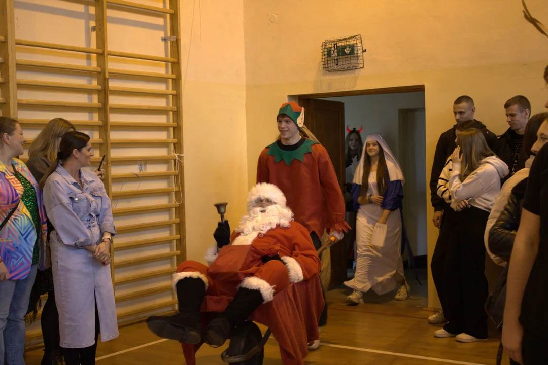 w otoczeniu elfów i rozdawał prezenty, a w zamian prosił młodzież o wierszyk, czy piosenkę. Podczas spotkania opłatkowego w Bursie wyłonieni zostali laureaci Konkursu na najładniejszą bożonarodzeniową dekorację pokoju pn„W salonie Św. Mikołaja".Wszyscy obecni na spotkaniu w szkolno- rodzinnej atmosferze miło spędzili ten przedświąteczny czas.
