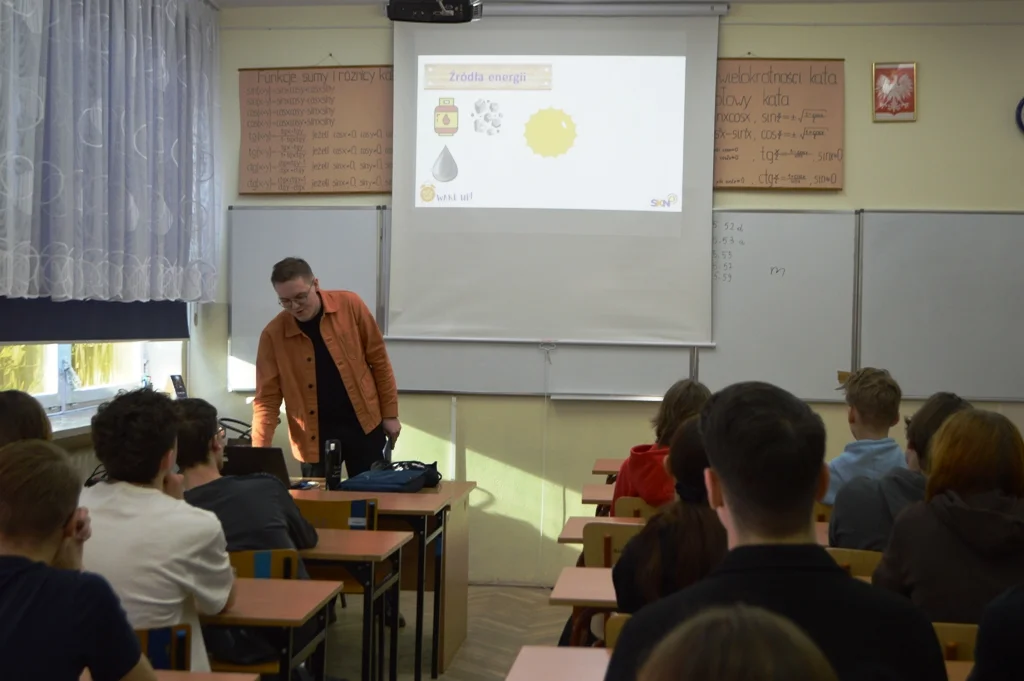8.02.2023 w II LO odbyło się spotkanie z Mateuszem Kołodziejczykiem, studentem Szkoły Głównej Handlowej, w ramach projektu WAKE UP (Warszawska Akademia Energetyki u Podstaw 2022).
