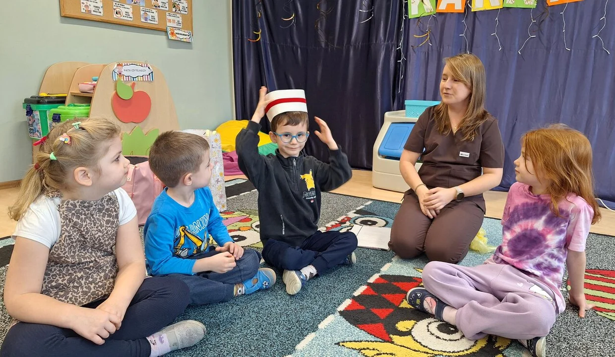Do Przedszkola nr 5 została zaproszona mama Frania, jednego z chłopców uczęszczających do placówki. Opowiedziała dzieciom o swojej pracy położnej.