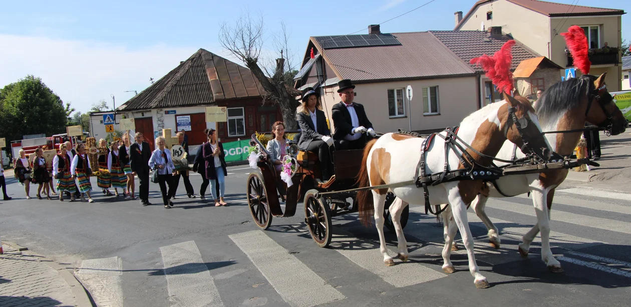 W korowodzie szły najpierw poczty sztandarowe, za nimi zespoły ludowe. Po nich w bryczce jechali starostowie dożynek. W korowodzie szły delegacje z wieńcami dożynkowymi. Prezentowały je sołectwa, koła gospodyń i Środowiskowy Dom Samopomocy w Jamach. Za wieńcami w pochodzie szli zaproszeni goście, przedstawiciele władz wojewódzkich, powiatowych, samorządowcy, parlamentarzyści.