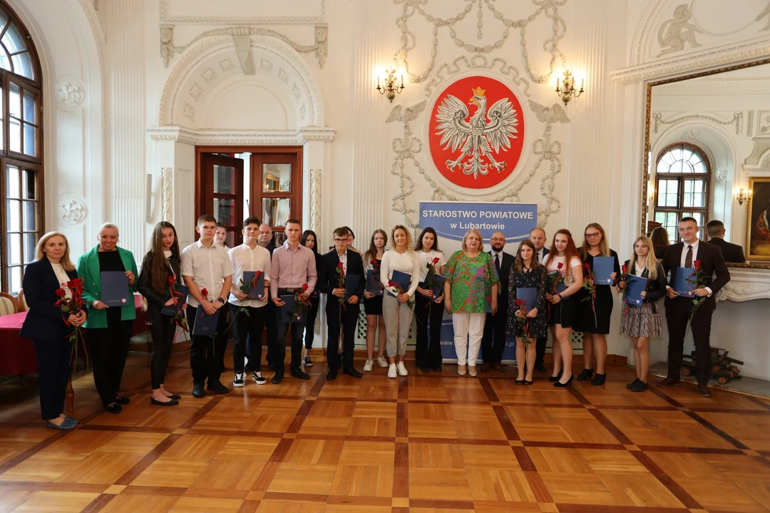 Stypendia wręczali: Starosta Lubartowski Ewa Zybała, Członek Zarządu Powiatu w Lubartowie – Jarosław Budka oraz kierownik Wydziału Oświaty i Sportu – Andrzej Sekuła. Otrzymało je 68 uczniów, którzy w II semestrze roku szkolnego 2021/2022 uzyskali wysoką średnią ocen, co najmniej 5,0, oraz wzorowe zachowanie.