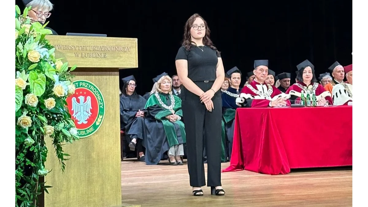 - Przedmiotem konkursu było opracowanie dowolną techniką plakatu promującego bezpieczeństwo w rolnictwie, a ocenie podlegały dobór treści do tematu, estetyka wykonania oraz oryginalność i pomysłowość. Klaudia Kęska nie miała sobie równych, a jej praca zatytułowana ,,Plony bezpieczeństwa- zasiewamy ostrożność, zbieramy bezpieczeństwo!” została uznana za najlepszą spośród ponad czterdziestu zgłoszonych i zapewniła uczennicy tytuł laureatki konkursu. Klaudia 30 września 2024 roku, podczas uroczystej inauguracji roku akademickiego 2024/2025 na Uniwersytecie Przyrodniczym w Lublinie, odebrała nagrodę w postaci hulajnogi elektrycznej, której fundatorem był KRUS w Lublinie oraz dyplom uznania. Konkurs objęty był honorowym patronatem rektora Uniwersytetu Przyrodniczego prof. dr. hab. dr. h.c. Krzysztofa Kowalczyka oraz prezesa Kasy Rolniczego Ubezpieczenia Społecznego Dariusza Rohde - informuje szkoła.