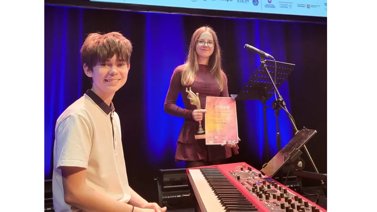 Duet ze Szkoły Podstawowej nr 3 w Lubartowie: Maja Stawecka z klasy 6 F i Kacper Czuchryta z klasy 8 D zdobył I miejsce i tytuł laureatów w kategorii szkół podstawowych XIV Ogólnopolskiego Konkursu Poezji Śpiewanej „Na strunach poezji”.