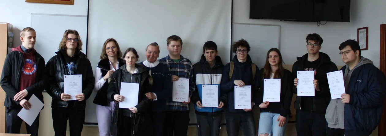 Decyzją Komitetu Organizacyjnego IV edycji Olimpiady Języka Angielskiego z Elementami Technicznymi dla szkół średnich uczennica klasy 4 THEKb Agata Żurawska została zakwalifikowana do etapu finałowego Olimpiady, który odbędzie się 21 kwietnia 2023 w Łodzi. W pierwszym, szkolnym etapie konkursu wzięło udział 23 uczniów naszej szkoły z Technikum Zawodowego oraz Branżowej Szkoły I stopnia. Rozwiązywali oni test o wysokim stopniu trudności sprawdzający rozumienie ze słuchu, rozumienie tekstu czytanego oraz znajomość środków leksykalno-gramatycznych. W etapie szkolnym w całym kraju wzięło udział 1382 uczniów ze szkół średnich, z czego do etapu finałowego zakwalifikowali się ci, którzy otrzymali minimum 59 punktów z 70 możliwych do zdobycia. W Łodzi rywalizować będzie 126 osób z całej Polski. Trzymamy kciuki za naszą Agatę!