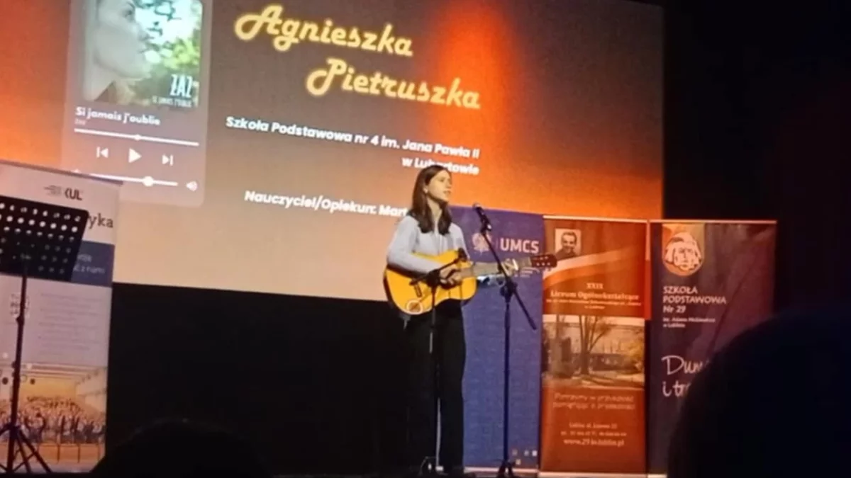 Agnieszka Pietruszka, uczennica klasy 8a, wzięła udział w XIX Wojewódzkim Festiwalu Piosenki Francuskiej, zajmując trzecie miejsce w kategorii szkół podstawowych - informuje SP 4.
