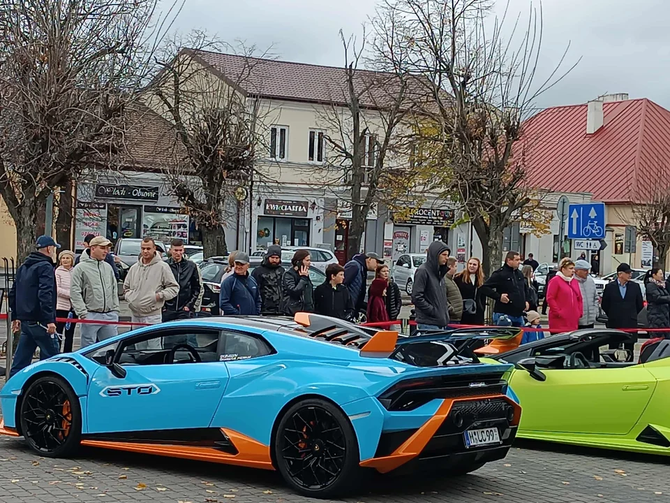 Dziś w Lubartowie można się przejechać Lamborghini, Ferrari, McLarenem, a może potężnym Hellcatem lub Mercedesem AMG GTR. Super samochody sa zaparkowane przy fontannie w Rynku I.