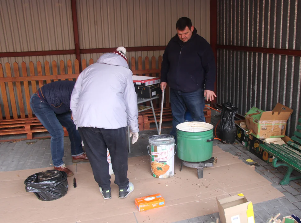 Akcja trwa w byłej komendzie PSP, obecnie siedzibie PCK. Ze starych puszek, zużytego oleju i wosku wyrabia się świece, które będą przekazane ukraińskim żołnierzom walczącym z rosyjskim najazdem. Świece dają dużo ciepła, palą się około 4 - 5 godzin. Wyrabiają je członkowie Polski 2050 i wolontariuszki z Ukrainy. W czasie poprzedniej akcji wykonano około 60 świec, dzisiaj ma ich powstać więcej, bo zgromadzono większy zapas wosku.