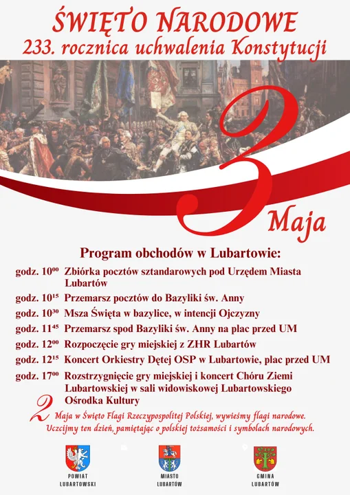 Informacje lubartowskieW środę będziemy obchodzić kolejną rocznicę uchwalenia Konstytucji 3 Maja. Jak będą wyglądały obchody w Lubartowie?