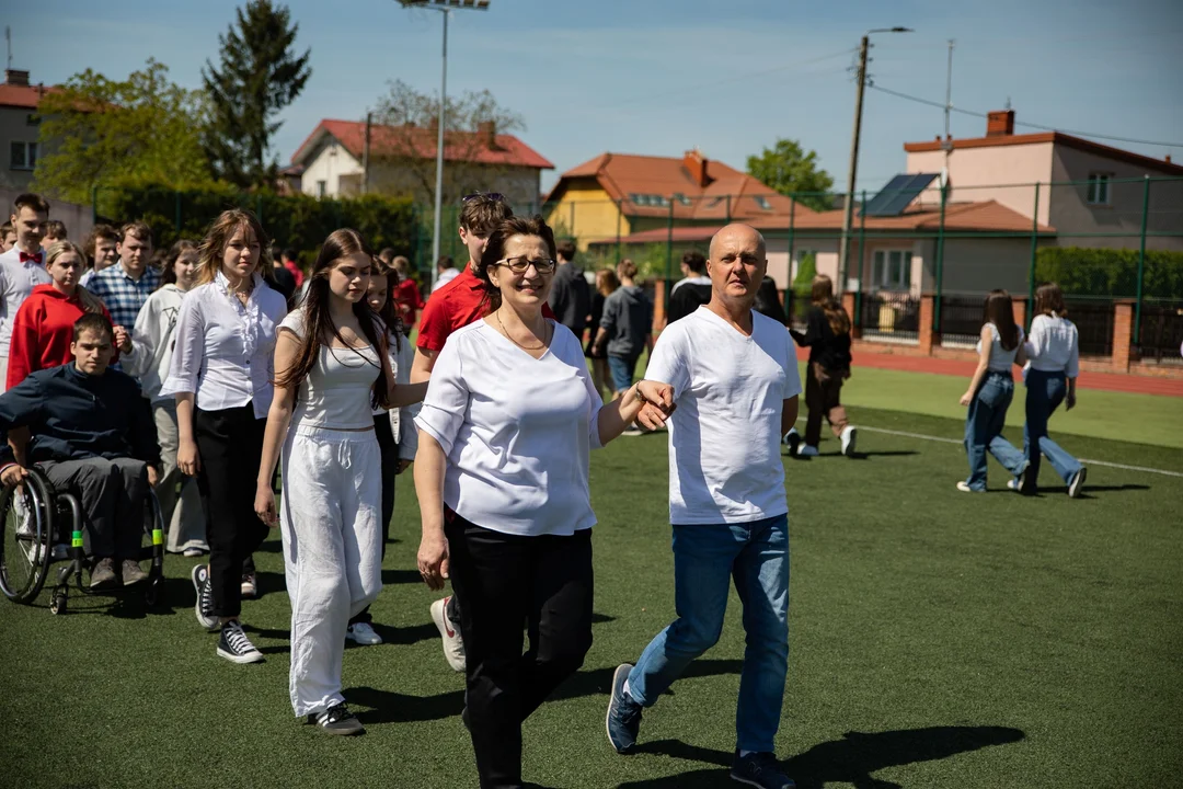 Kulminacją szkolnych obchodów było odtańczenie poloneza przez uczniów i nauczycieli ZS 2 na boisku.