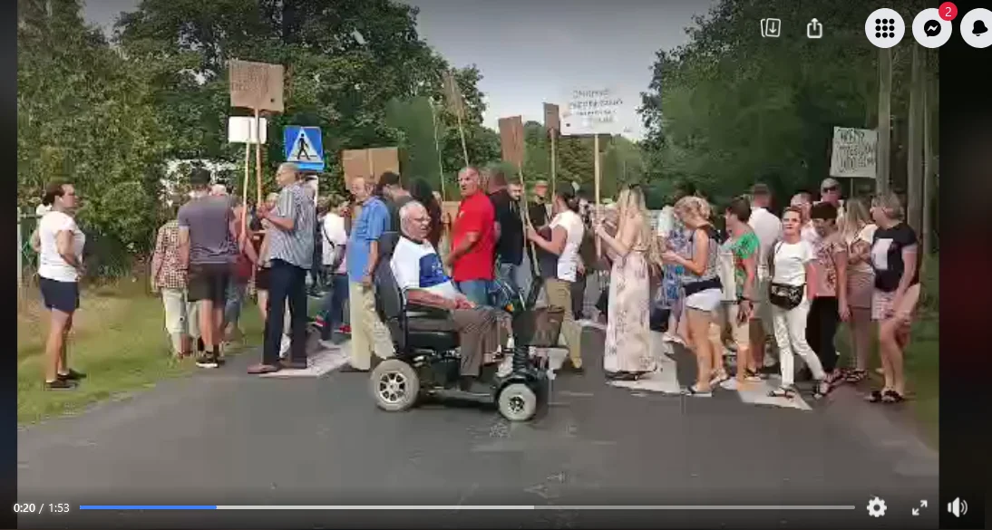 Ludzie mają dość dziurawej drogi i braku chodnika. Wyszli na przejście dla pieszych, blokują je. Domagają się przebudowy drogi. Uczestnicy protestu mają transparenty i wznoszą okrzyki: - Chcemy drogi i chodnika!