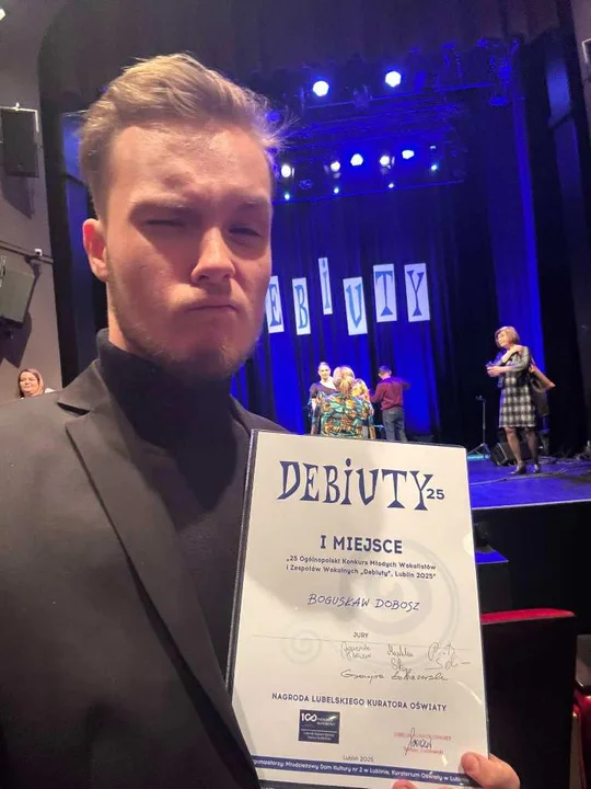 Bogusław Dobosz, uczeń klasy IIa zdobył I miejsce, zaś Martyna Stasiak z klasy IIIe (reprezentując tym razem PMDK w Lubartowie) - III miejsce w jubileuszowej 25. edycji Konkursu Młodych Wokalistów i Zespołów Wokalnych Debiuty 2025, organizowanego przez MDK2 w Lublinie - informuje II LO. To pierszy taki przypadek w historii szkoły!