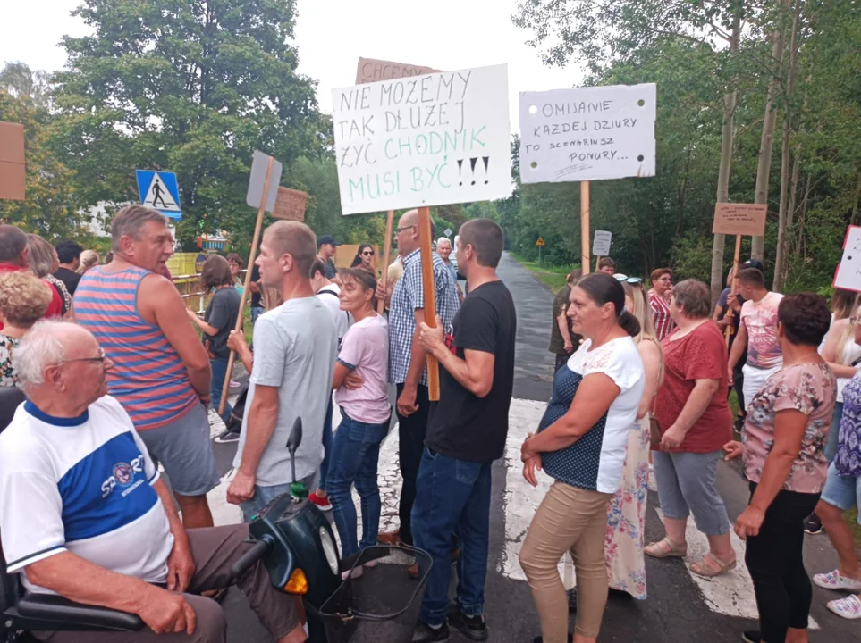 - Przyjdzie deszcz, to nie mam którędy jechać, nie ma chodnika, jestem inwalidą I grupy - mówi mężczyzna na wózku uczestniczący w proteście.