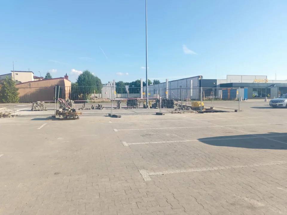 Uwagę przyciąga również nowa - dobudowana część budynku, w którym obecnie mieszczą się sklepy "Netto" i "Jysk" (druga część inwestycji). Pomimo trwających prac, klienci nie mają problemu z dostępem do lokali handlowych – chodnik przed sklepami pozostaje nieogrodzony i w pełni przejezdny.