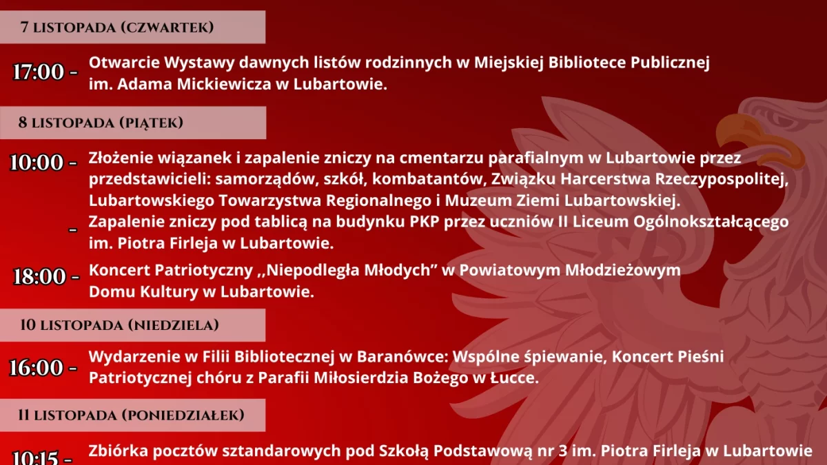 Wydarzenia patriotyczne zaplanowano też w gminie Lubartów.