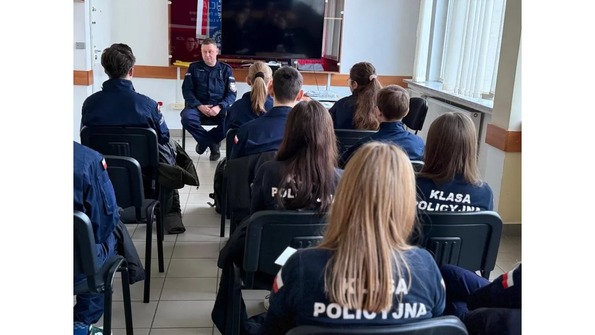 Kolejnym punktem wizyty był Wydział Prewencji a następnie Ruchu Drogowego, gdzie uczniowie poznali pracę policjantów tzw. „patrolówki”. Następnie udali się na salę odpraw, gdzie funkcjonariuszka opowiedziała o specyfice zawodu policjanta oraz o procesie rekrutacji do służby. Kolejnym etapem spotkania było przybliżenie młodzieży pracy dzielnicowego o której opowiedział starszy aspirant Łukasz Wójcik - relacjonuje wizytę mł. asp. Jagoda Maj. Uczniowie klas mundurowych rozmawiali też z policyjnym technikiem kryminalistyki starszym aspirantem Maciejem Niećko.