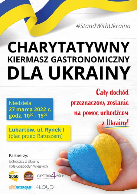 W niedzielę 27 marca o godz. 10 rozpocznie się kiermasz gastronomiczny pod hasłem "Dla Ukrainy". Cały dochód będzie przeznaczony na pomoc dla uchodźców. Stoiska staną na placu przed ratuszem przy ul. Rynek I. Osoby, które chcą coś dobrego upiec, upichcić lub ulepić i dołączyć do kiermaszu, mogą się zgłaszać do czwartku pod numer telefonu 691 356 573.