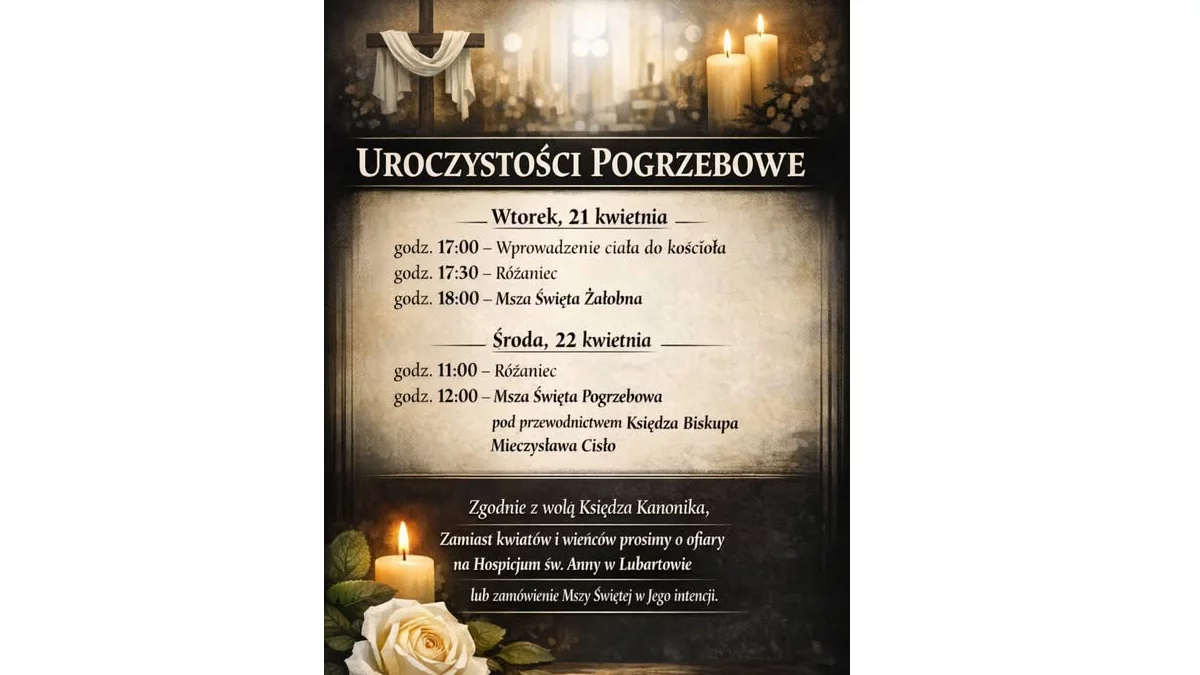 - Zgodnie z wolą Zmarłego, zamiast kwiatów i wieńców prosimy o wsparcie Hospicjum św. Anny w Lubartowie lub zamówienie Mszy Świętej w Jego intencji - informuje parafia Przemienia Pańskiego w Firleju.