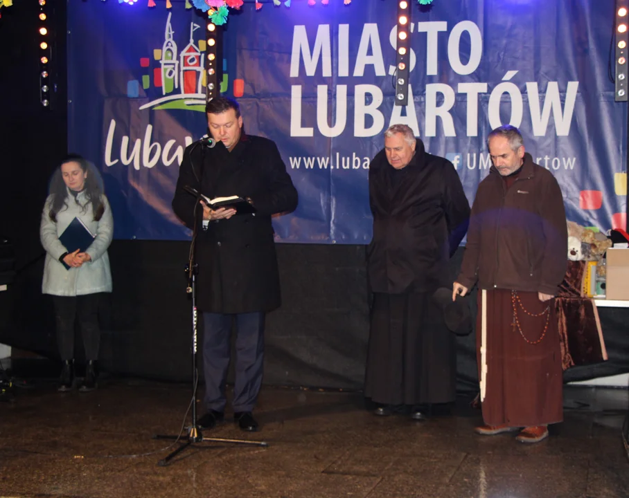 Modlitwy odmówili ks. Andrzej Juźko i o. Wojciech Gwiazda, burmistrz Krzysztof Paśnik przeczytał fragment Pisma Świętego. Uczestnicy spotkania przed ratuszem dzielili się opłatkem, składali sobie życzenia świąteczne. Był święty Mikołaj, z którym można było zrobić sobie zdjęcie. Chór Klubu Senior + śpiewał kolędy i piosenki świąteczne. Można było skorzystać z poczęstunku.