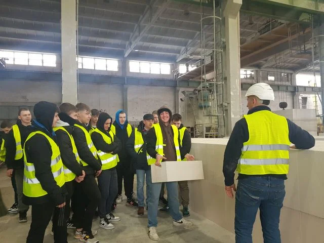 W dniu 6 marca 2023 r. zakład w Lubartowie zwiedziła klasa 3TB ucząca się w zawodzie technik budownictwa wraz nauczycielami przedmiotów budowlanych: p. Magdaleną Konrad, p. Stanisławem Ozonkiem i p. Romanem Podleśnym oraz kierownikiem kształcenia praktycznego p. Jarosławem Lemieszkiem. Uczniom przedstawiono kolejne etapy produkcji bloczka gazobetonowego, który jest głównym materiałem stosowanym przy wznoszeniu ścian. Młodzież dowiedziała się jaki jest skład produkowanego materiału oraz asortyment przedsiębiorstwa. Największe zainteresowanie wzbudził etap dojrzewania mieszanki, z której wykrawane są bloczki i autoklawizacja gotowych bloczków.