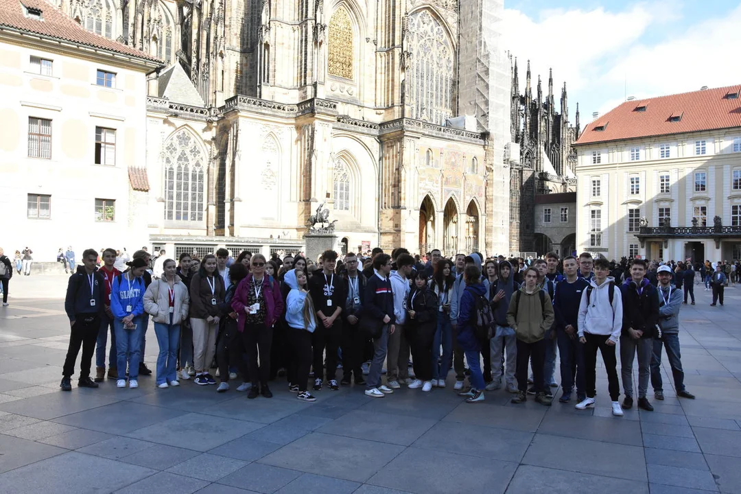 Dzień drugi – Praga. „W Pradze cudowne jest to, że jesteśmy nie u siebie, a czujemy się, jakbyśmy byli u siebie” . Piękne miasto, w którym zwiedziliśmy Zamek na Hradczanach, katedrę Św. Wita, Plac Wacława, Ratusz Staromiejski z zegarem astronomicznym, Most Karola i Złotą Uliczkę. Zobaczyliśmy kilka prac czeskiego rzeźbiarza- skandalisty, Davida Černego (np. Wisielec nad ulicą Husa, Sikające postacie, Głowa Franza Kafki). Zatrzymaliśmy się na Alei Narodowej, gdzie w listopadzie 1989 roku doszło do brutalnego rozpędzenia studenckiej manifestacji (był to czas aksamitnej rewolucji).