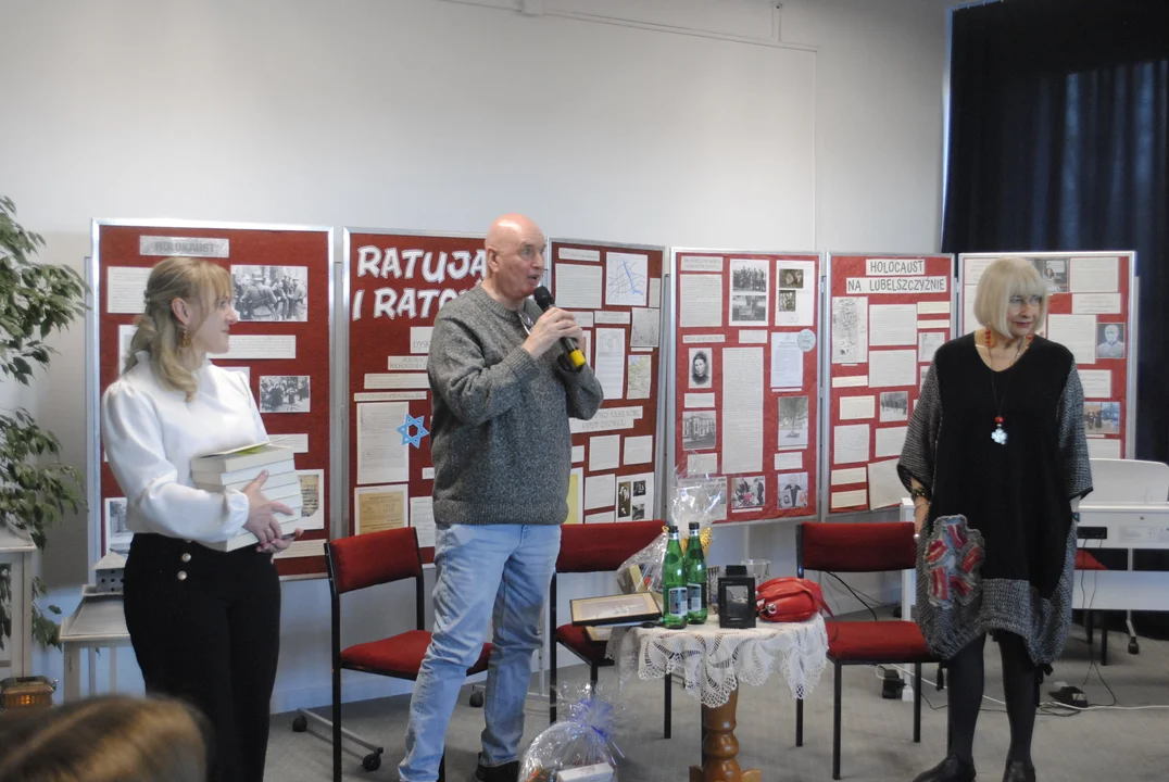 Cezary Harasimowicz, pisarz i scenarzysta, napisał powieść "Bieta" opartą na biografii Elżbiety Ficowskiej. Oboje byli dziś gośćmi Szkoły Podstawowej nr 3. Elżbieta Ficowska opowiadała o tym, jak wyglądało jej życie po uratowaiu z getta i o tym, jak dowiedziała się o swoim żydowskim pochodzeniu. Wspominała też czas, kiedy w podziemiu w czasach PRL była współpracownicą Jacka Kuronia, a po przemianach ustrojowych pracowała z nim w Ministerstwie Pracy i Polityki Socjalnej.