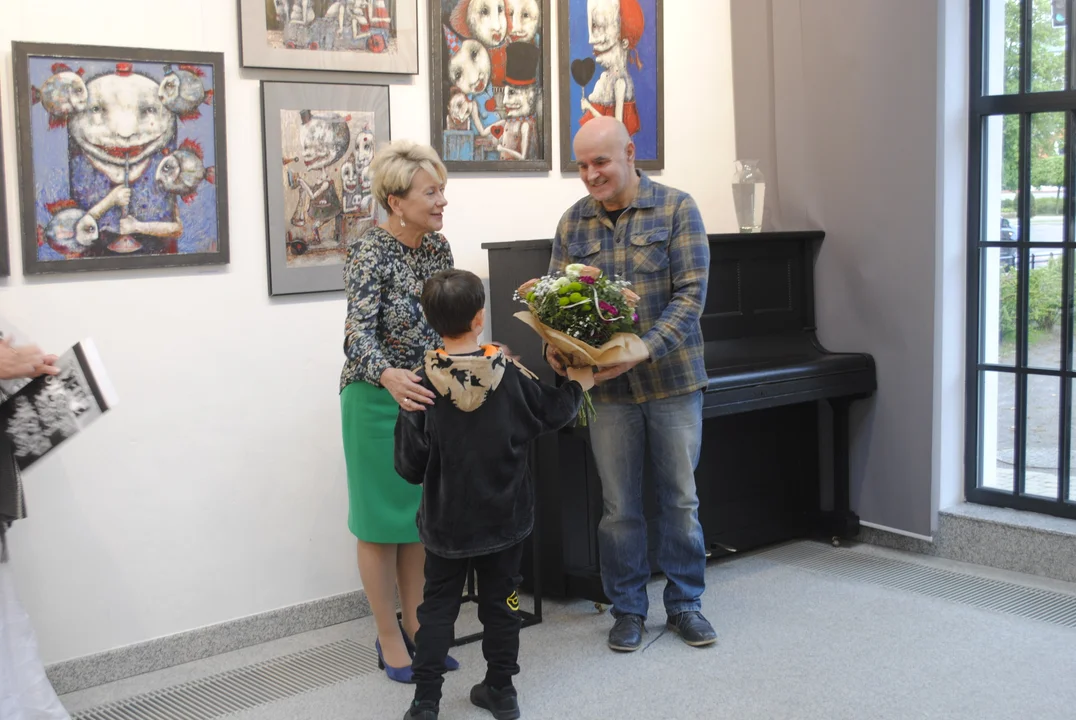 - Dowiedziałam się, że Piotr Kamieniarz mieszka w Salominie, czyli miejscowości niedaleko Kraśnika. Malarstwo jest jego pasją. Wprawdzie nie zdecydował się na edukację formalną, ale jego prace nie odbiegają poziomem od znanych artystów profesjonalnych. Charakteryzuje je bardzo duża dyscyplina kolorystyczna, niesamowita wyobraźnia. Wyobraźnia, która jest troszkę groźna, wywołuje dużo skojarzeń i refleksji. Malarstwo pana Piotra jest bardzo charakterystyczne, dominuje groteska, karykatura.