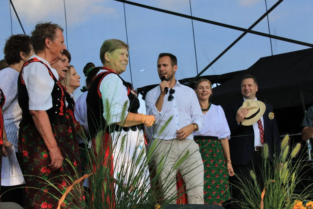 Tegoroczne dożynki uświetniły występy zespołów śpiewaczych z Gminy Niedźwiada. Na scenie pojawił się poseł Jan Kanthak, z którym Panie z zespołów zatańczyły i zaśpiewały.