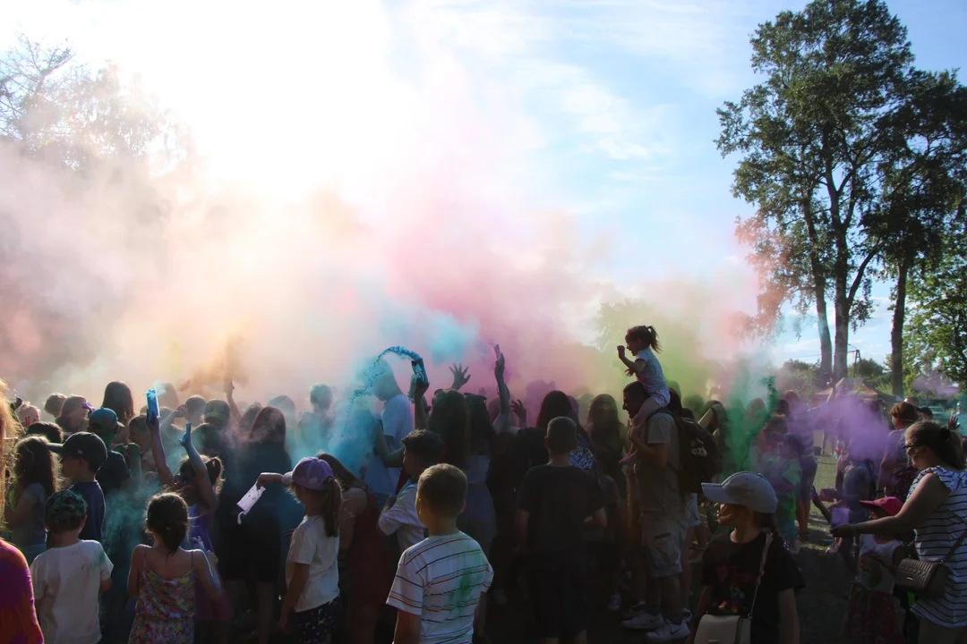 Miejscem zabawy było boisko w parku miejskim. Co pół godziny w górę wylatywała kolorowa chmura. W przerwie między wyrzutami proszku dzieci posypywały sie nim nawzajem. Niektórzy dorośli też dołączyli do zabawy.
