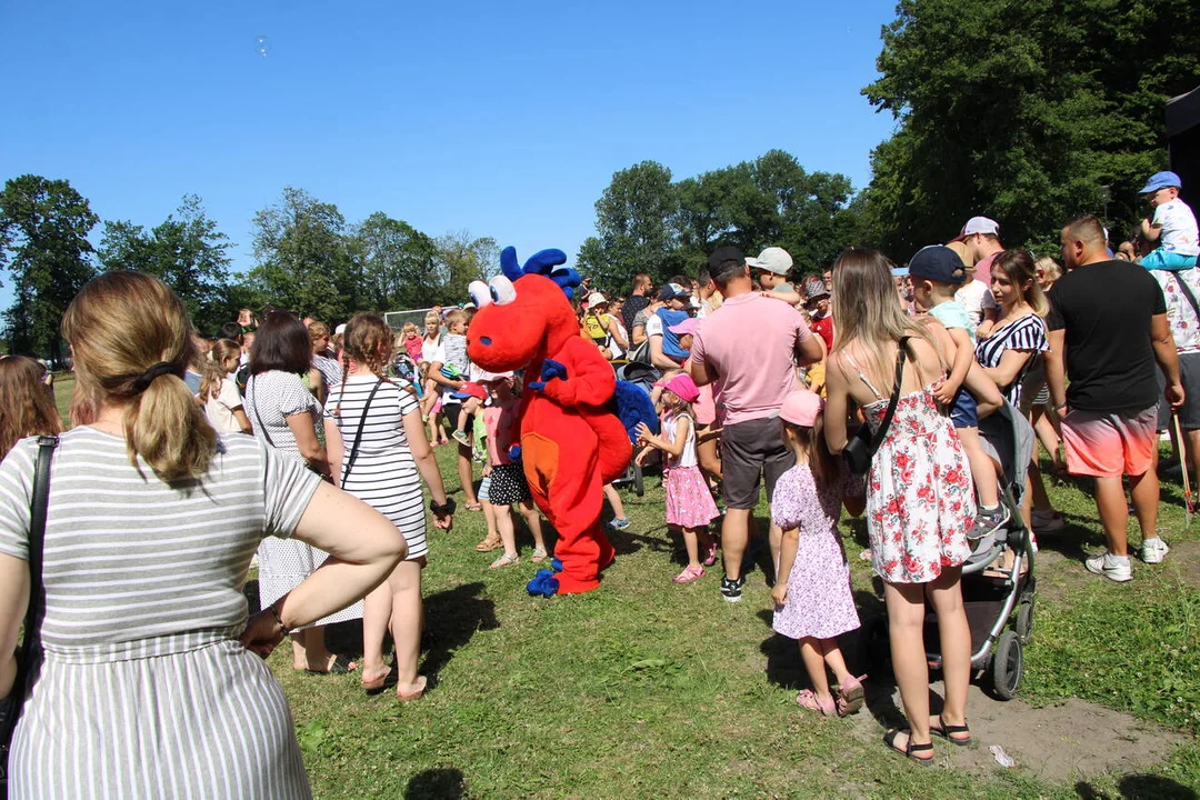 O godz. 15 zaczęła się zabawa ze smokiem Edziem. Dzieci mogą sobie zrobić z nim zdjęcia, śpiewać i tańczyc. Atrakcją są zabawy z bańkami mydlanymi. Są dmuchańce.