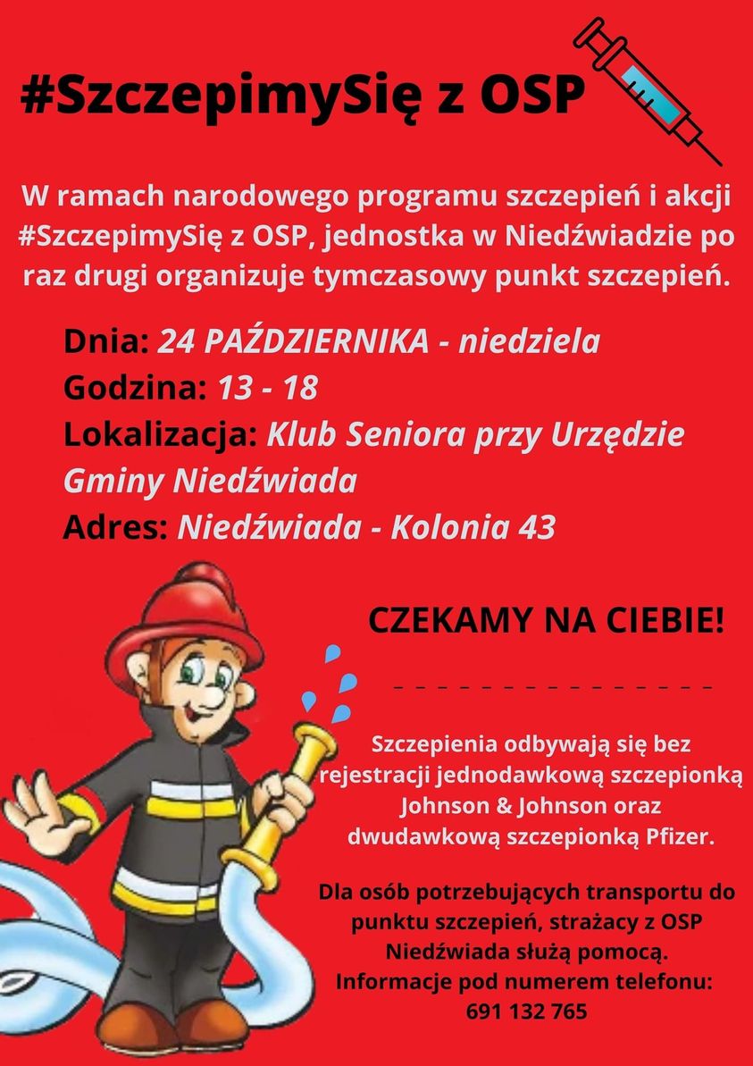 Zaszczep się z OSP w Niedźwiadzie. Akcja strażaków ochotników w niedzielę