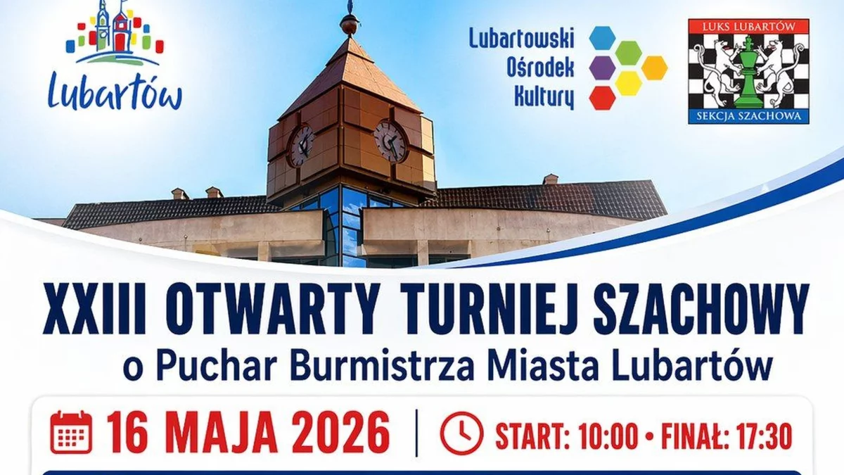 Informacje lubartowskieXXIII Otwarty Turniej Szachowy o Puchar Burmistrza Miasta Lubartów już 16 maja.
