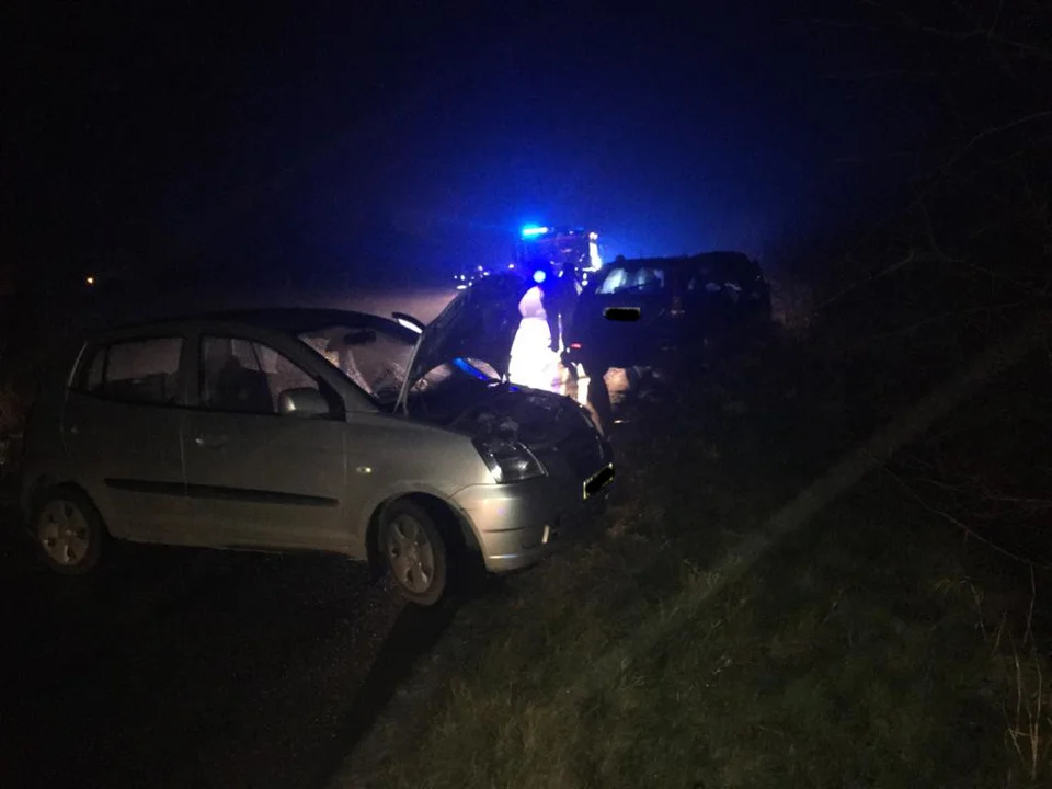 Do czołowego zderzenia dwóch samochodów osobowych doszło około godz. 17.52.