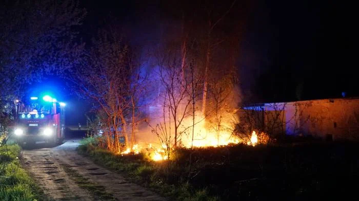 Alarm pierwszy: pożar przy garażach
