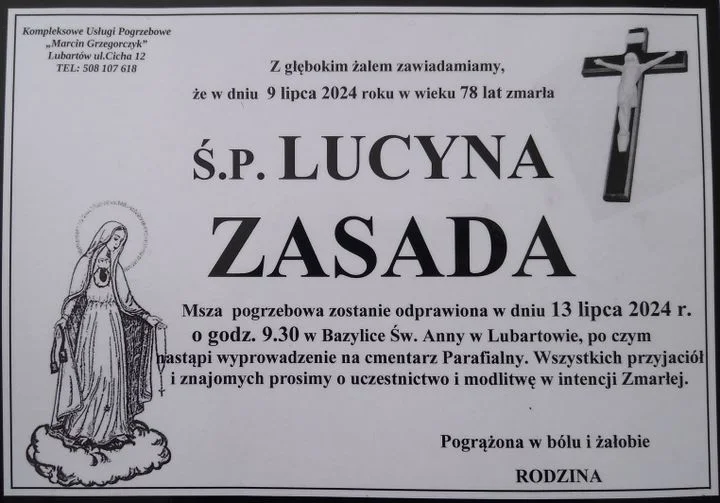 Msza święta w intencji zmarłej zostanie odprawiona 13 lipca o godz. 9.30 w bazylice św. Anny w Lubartowie. Była dyrektor liceum spocznie na cmentarzu parafialnym.