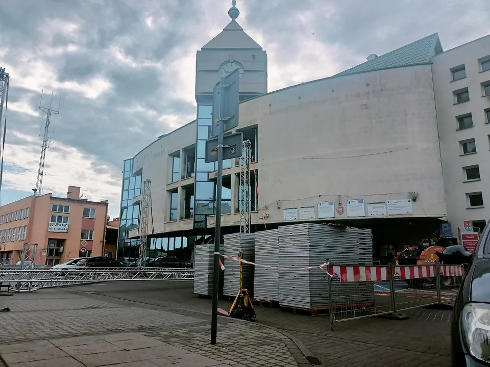 Trwa montaż sceny pod lubartowskim ratuszem. Nieprzejezdna jest już ulica Jana Pawła II. W weekend festyn obejmie ulice: Jana Pawła II, Rynek II, 11 Listopada, Plac przed Urzędem Miasta Lubartów, parking przez dawnym budynkiem Straży Pożarnej, plac przed fontanną, parking przy ulicy Joselewicza.