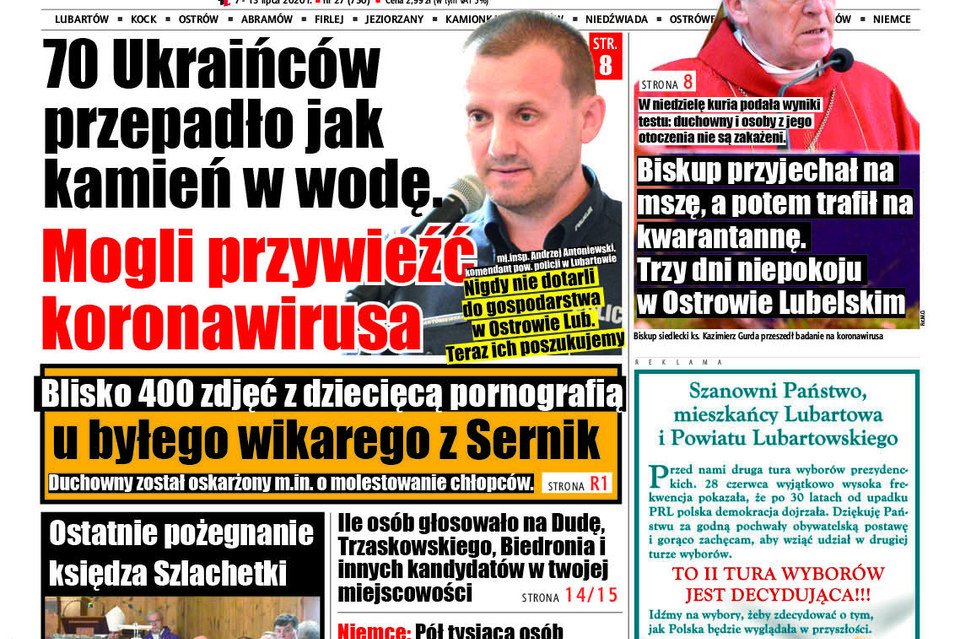 Policja z Lubartowa szuka 70 Ukraińców, którzy podczas przekraczania granicy zadeklarowali, że będą przebywać na terenie naszego powiatu, a nigdy tutaj nie dotarli. Wspomniani obcokrajowcy przekroczyli polsko-ukraińską granicę około miesiąc temu. - M.in. na przejściu granicznym w Medyce. Wskazali jako swoje miejsce pracy gospodarstwo w gminie Ostrów Lub. Dostali też wcześniej z tego gospodarstwa zaproszenia do pracy, na podstawie których mogli do Polski przyjechać w celu podjęcia pracy. Nigdy nie dotarli do tego gospodarstwa. Teraz ich poszukujemy - przyznaje mł.insp. Andrzej Antoniewski, komendant powiatowy policji w Lubartowie.