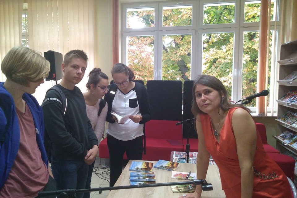 Monika Knapczyk na spotkaniu prezentowała słuchaczom fragmenty swoich dwóch książek.
