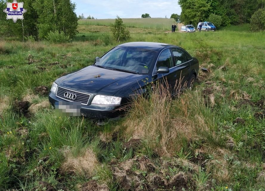 Wczoraj rano w ramach policyjnej akcji ,,Bezpieczna 19-tka” policjanci z Wydziału Ruchu Drogowego lubartowskiej komendy prowadzili nadzór nad ruchem pojazdów w miejscowości Wincentów. Ich uwagę zwróciło audi, które wyprzedzało inne samochody w miejscu, gdzie było to już nie dozwolone. Policjanci widząc popełnione wykroczenie dali kierującemu sygnał do zatrzymania. Mężczyzna widząc radiowóz przyśpieszył i zaczął uciekać w kierunku Firleja. Mundurowi ruszyli za nim w pościg. Kierujący łamiąc przepisy ruchu drogowego skręcił w Lisów, następnie nie patrząc na obowiązujące oznakowanie pionowe i poziome, dwukrotnie nie zatrzymał się na znaku stop, przeciął skrzyżowanie i wjechał w drogę gruntową. Tam stracił panowanie nad samochodem i wjechał w teren podmokły. Policjanci zatrzymali uciekiniera. Jak się okazało 22-letni mężczyzna miał prawie pół promila alkoholu w organizmie. Został zatrzymany i przewieziony do komendy w Lubartowie. Samochód został odholowany na policyjny parking. Funkcjonariusze zatrzymali mężczyźnie prawo jazdy.