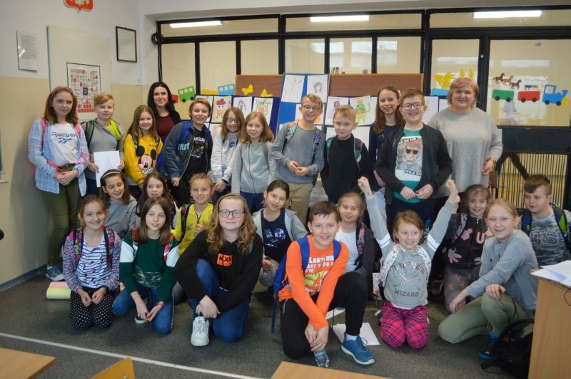 To niezwykłe spotkanie odbyło się 6 lutego 2020 roku w czytelni biblioteki szkolnej. Pani Izabela Madeja współpracuje z wieloma wydawnictwami książek (m.in.: Akapit Press, Zielona Sowa), do chwili obecnej zilustrowała ok. 30 książek dla dzieci w różnym przedziale wiekowym. Mogliśmy podziwiać piękne i kolorowe ilustracje do książek o różnej tematyce. Pani Iza pokazała nam też szkicownik ze swoimi pomysłami, w którym wszystkie ilustracje wykonane były… czarnym długopisem, jej ulubionym środkiem graficznym. Na spotkaniu dowiedzieliśmy się, że ilustrowanie książek, to dość długi proces. Najpierw ilustrator otrzymuje od wydawcy scenariusz książki, który musi przeczytać, potem wymyśla swoją wizję i w końcu ilustruje. Pani Iza Madeja w swojej pracy ilustratora używa tabletu graficznego. Każdą ilustrację rozpoczyna od narysowania konturów, wybiera jej najwłaściwszą wersję i na końcu koloruje.