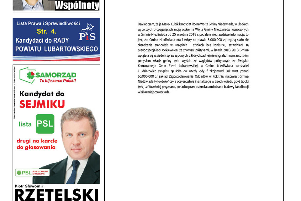 - Przede wszystkim chciałbym serdecznie podziękować wszystkim, którzy zdecydowali się oddać na mnie głos w Prawyborach Wspólnoty Lubartowskiej. Ta wygrana to bardzo ważne wsparcie tego, co robię. Nie chciałbym typować wyniku wyborów samorządowych. Wierzę, że wynik prawyborów tygodnika to prognostyk dobrego wyniku wyborów 21 października (śmiech).