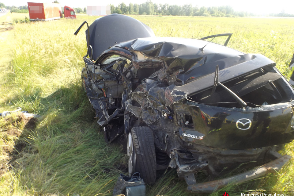 Straż pożarna otrzymała zgłoszenie o 8.19. Doszło do zderzenia samochodu ciężarowego marki mercedes actros z samochodem osobowym marki mazda 3. Pojazdy znajdowały się poza jezdnią. Kierujący zestawem ciężarowym mężczyzna nie wymagał pomocy medycznej. W celu ewakuacji kierującej z wnętrza auta osobowego, zaistniała konieczność użycia zastawu narządzi hydraulicznych. Pod nadzorem Zespołu Ratownictwa Medycznego kobieta została ewakuowana z uszkodzonego pojazdu na desce ortopedycznej. W trakcie działań ratowniczych na drodze DK 19 zabezpieczone zostało miejsce do lądowania śmigłowca