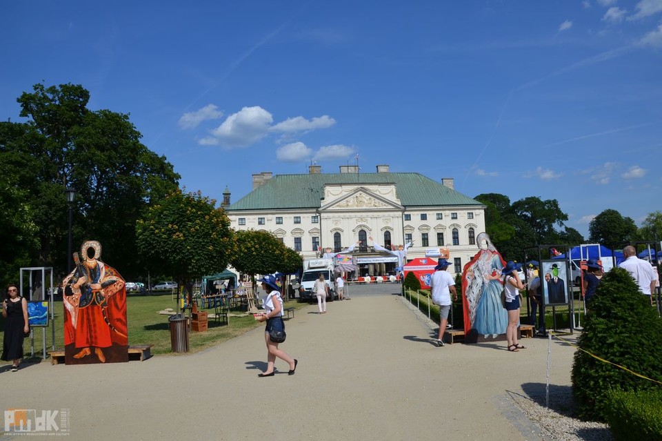 W program „Niedzieli u Sanguszków" wpleciono dwa wydarzenia realizowane w ramach ogólnopolskiej kampanii „Dumni z Polski", zorganizowanej z okazji rocznicy stulecia odzyskania niepodległości przez nasz kraj. Na początku imprezy wychowankowie PMDK wystąpili z koncertem patriotycznym, a w plenerowej pracowni odbył się konkurs plastyczny, w którym dorosłe i młodzieżowe jury przyznało nagrody za plakaty pt. „Dumni z Polski". Nagrody wręczył na scenie Starosta Lubartowski p. Fryderyk Puła oraz Członek Zarządu Powiatu p. Radosław Guz.