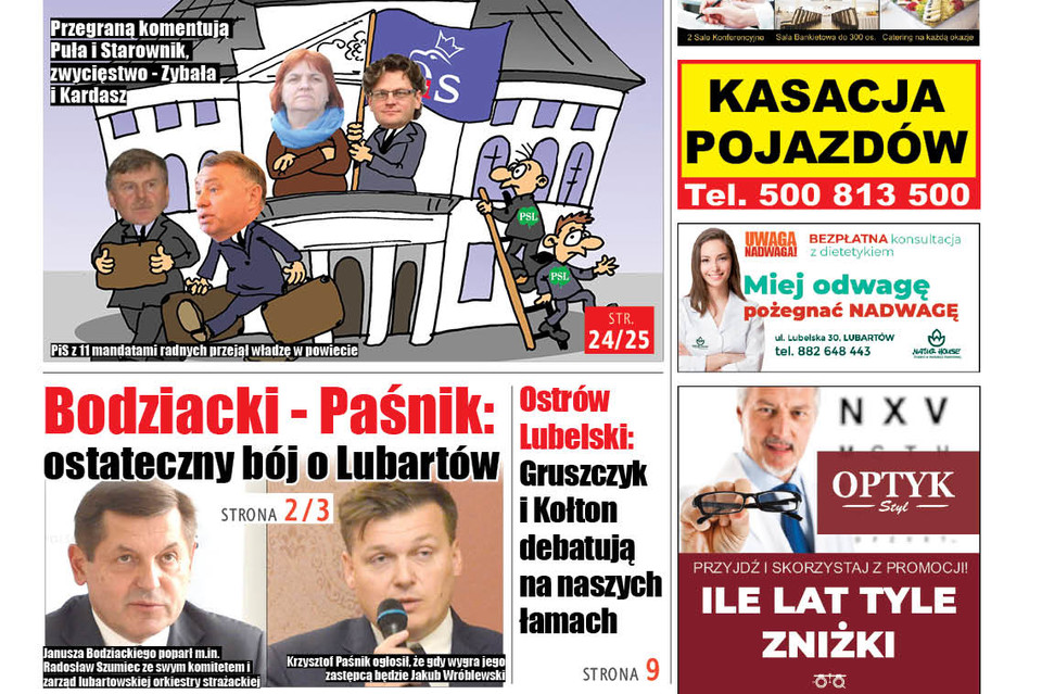 Większość w Radzie Powiatu bez konieczności zawiązywania koalicji - na taki komfort w zaczynającej się właśnie kadencji mogą pozwolić sobie radni, którzy dostali się do Rady z komitetu wyborczego partii Prawo i Sprawiedliwość. Zdobyli bowiem aż jedenaście mandatów, detronizując jednocześnie dominację radnych z Polskiego Stronnictwa Ludowego. Ci zdołali uzbierać jedynie siedem miejsc w Radzie Powiatu. Oznacza to ni mniej, ni więcej, że role się odwróciły - teraz to prawica będzie zarządzać Starostwem Powiatowym w Lubartowie, a "Ludowcy" będą opozycją.