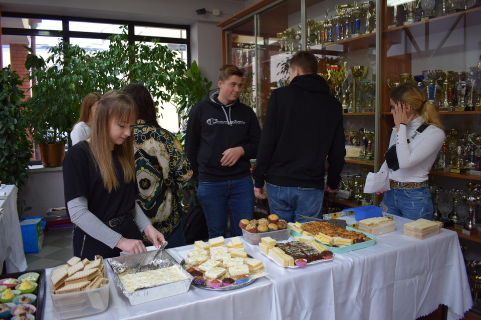 W organizacji tej inicjatywy pomogło jednak prawie 30 osób, które tego dnia przyniosły upieczone w domu ciasta i ciasteczka. Kawałki ciast nie były małe, w myśl zasady zapłać ale najedz się.