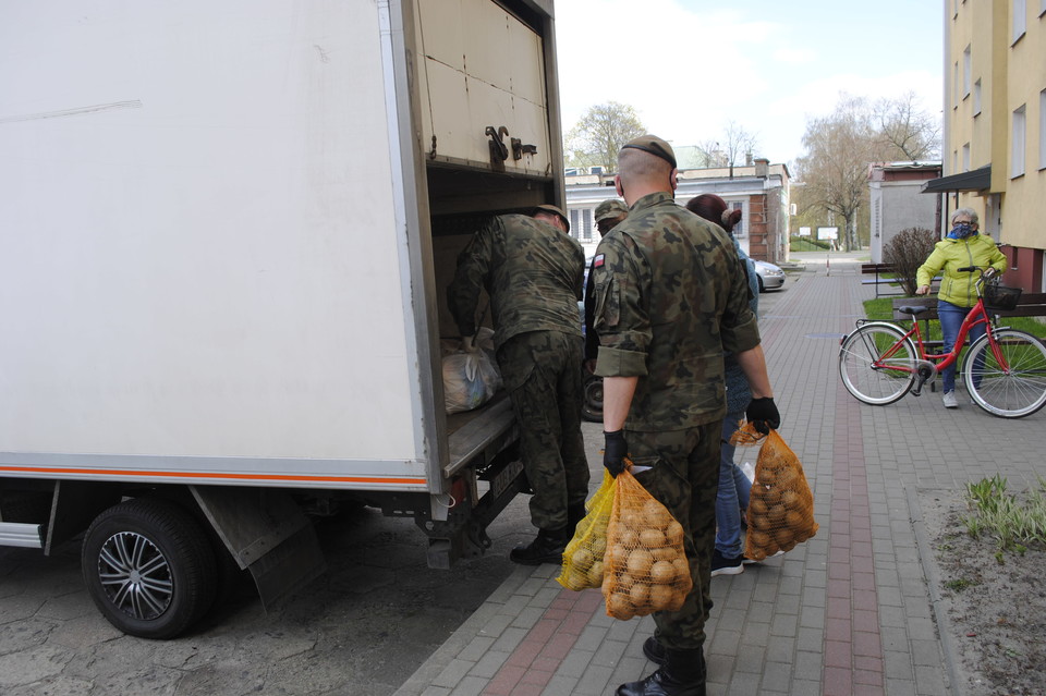 Pomoc organizuje Stowarzyszenie Centrum Wolontariatu z Lublina. Dziś transport żywności dotarł do Lubartowa. Wolontariuszami są żołnierze WOT. Paczki dla seniorów zawierają m.in. warzywa, konserwy, kasze, cukier, mąkę, olej.