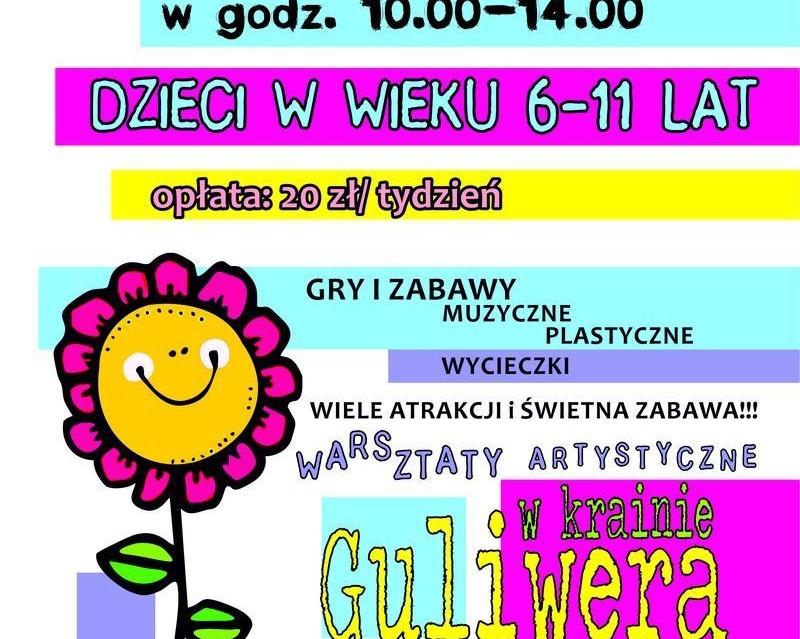 Akcja "W krainie Guliwera" jest przeznaczona dla dzieci w wieku 6-11 lat. Składka na materiały i przejazdy to 20 złotych. Rodzice dzieci chcących uczestniczyć w akcji muszą wypełnić formularz pozwolenia dostępny w sekretariacie PMDK lub na stronie internetowej placówki. Zajęcia będą się odbywały od 24 do 28 sierpnia w godzinach 10 -14. W programie m.in. zabawy muzyczne i taneczne, akcje plastyczne, zabawy sportowe i rekreacyjne, wycieczki piesze.